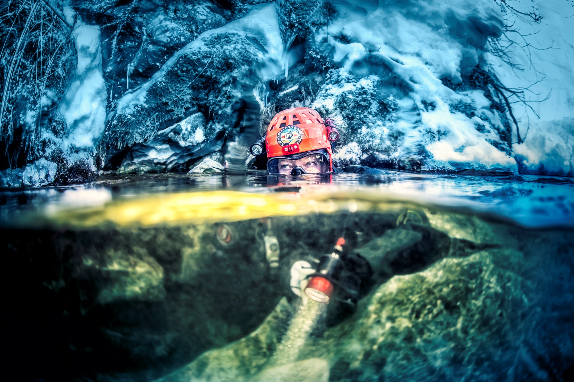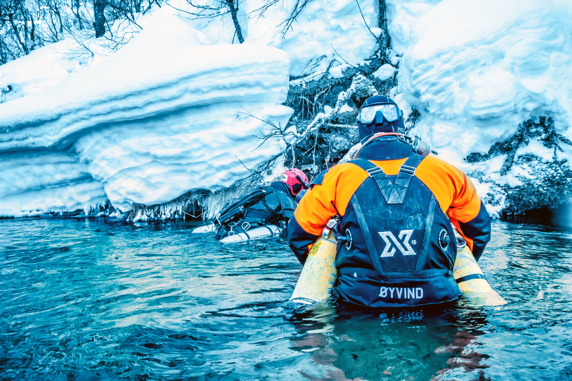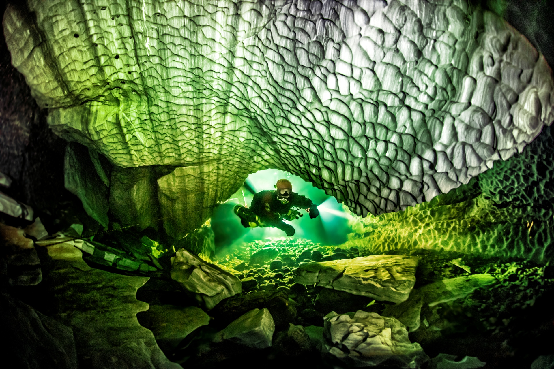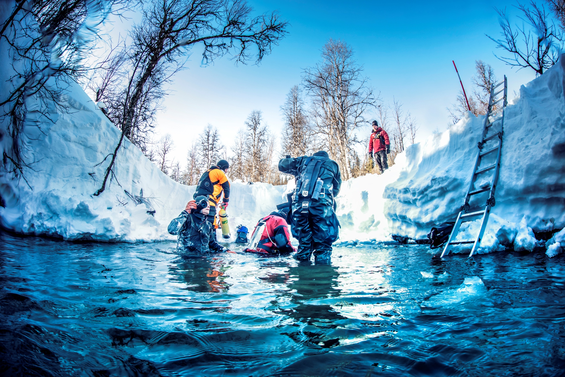 Eksploracja zalanych jaskiń Köldhålet i Festins zlokalizowanych w dolinie Bjurälven.