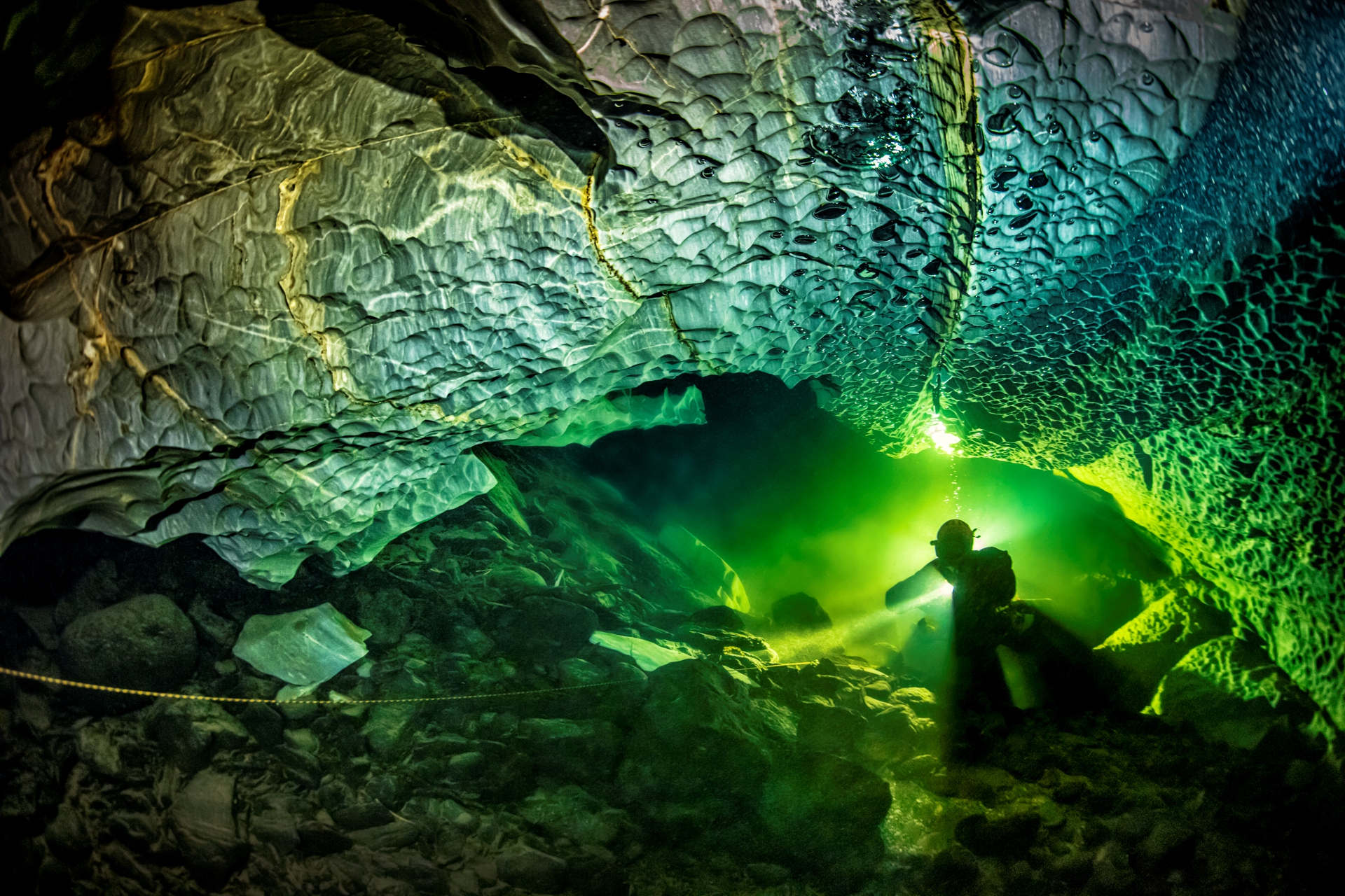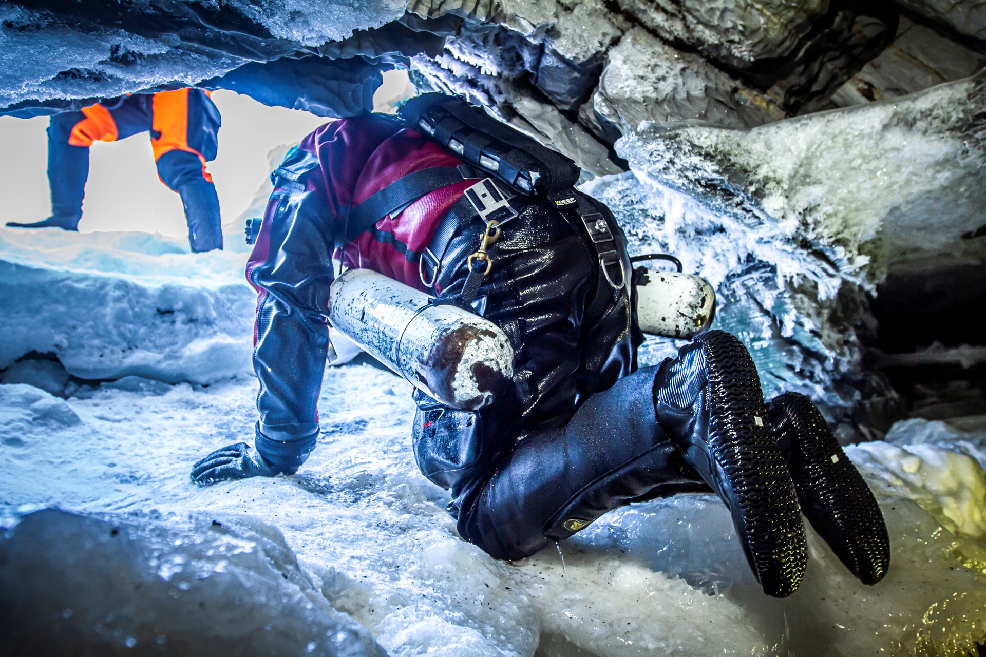 Główny ciąg jaskini to zalany wodą korytarz, biegnący od wejścia w kierunku zachodnim. Z poprzednich ekspedycji wiadomo było, iż jego w połowie znajduje się sucha komora, z której dziesięciometrowej długości lodowy stok prowadzi do ciasnego otworu wyjściowego, zwykle w zimie zatkanego lodem. W dalszej części zalanego korytarza, do której dotarcie wymaga niemal godzinnego nurkowania, znajduje się niemal pionowy szyb opadający z głębokości 10 metrów na 20 m. Jednym z celów ekspedycji było wykonanie dokumentacji fotograficznej tego miejsca.
