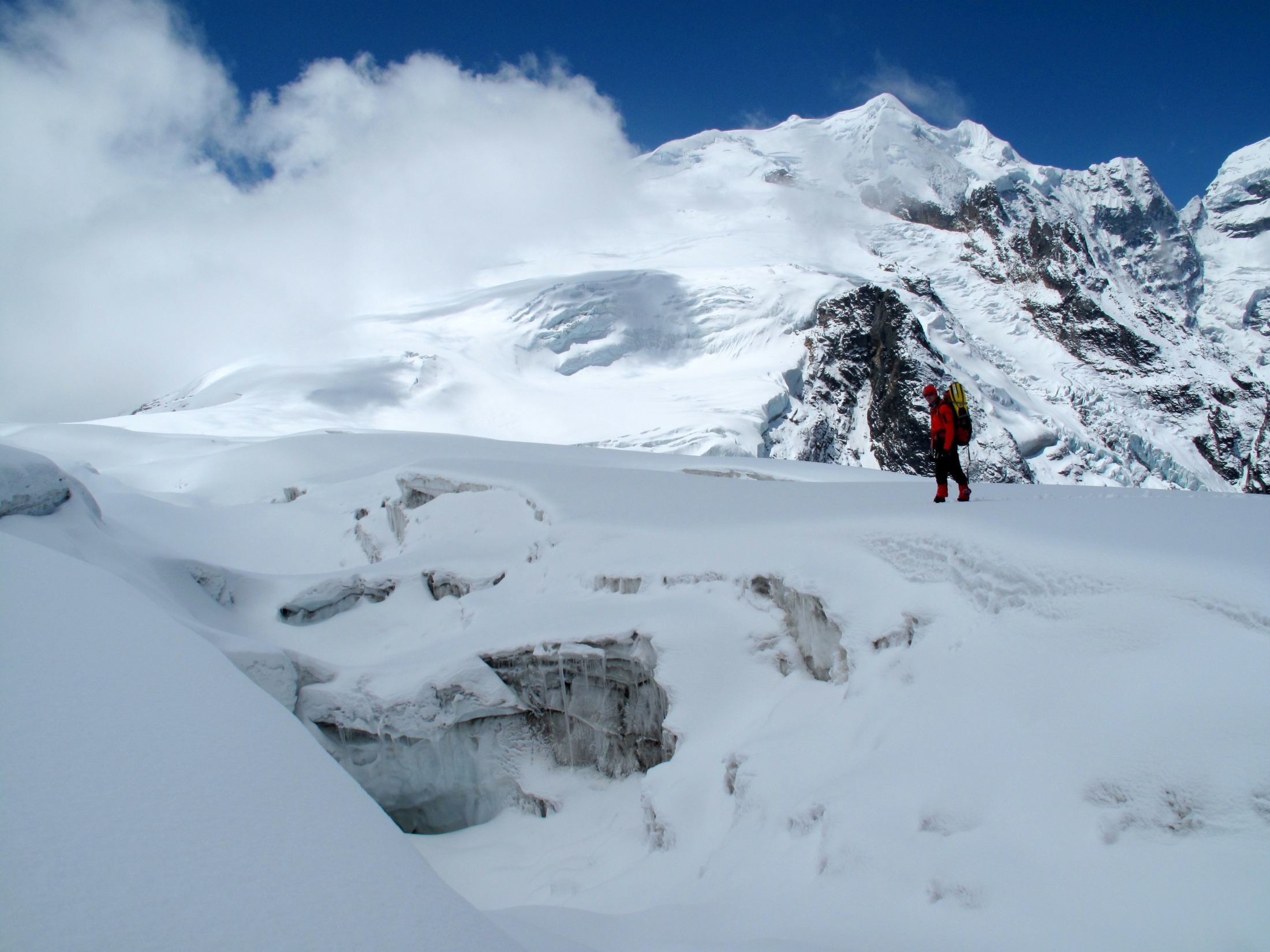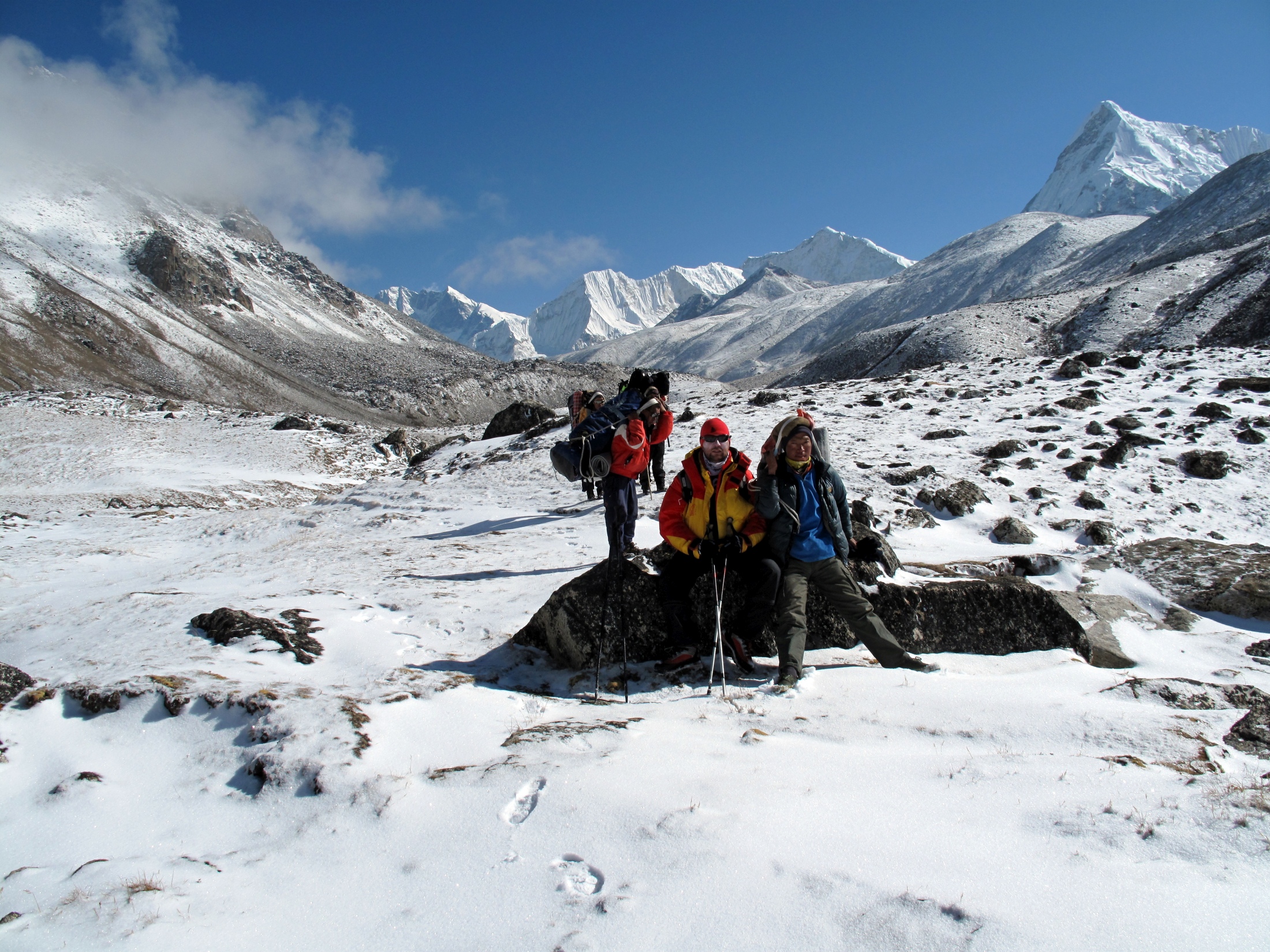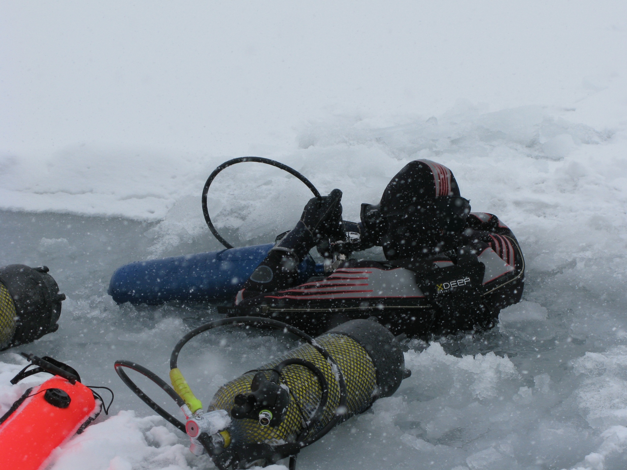 Po dotarciu na miejsce w którym miało znajdować się jezioro, okazało się, że krajobraz przypomina lodową pustynię bez żadnych punktów odniesienia. Jezioro było ukryte gdzieś głęboko pod lodem, a jego zlokalizowanie wymagało dalszej wyczerpującej wędrówki po lodowcu. Gdy wreszcie udało się znaleźć niewielki otwór w grubych pokładach śniegu i lodu, nastąpiło kolejne załamanie pogody. O ile każde zimowe nurkowanie podlodowe można nazwać wymagającym, tutaj wystąpiły wszystkie elementy drastycznie podnoszące ryzyko nurkowania: duża wysokość, wynosząca ponad 5000 m n.p.m., bardzo niska temperatura powietrza i silny wiatr, zerowa widoczność, nieznane otoczenie i oddalenie od siedzib ludzkich uniemożliwiające zorganizowanie jakiejkolwiek akcji ratunkowej.