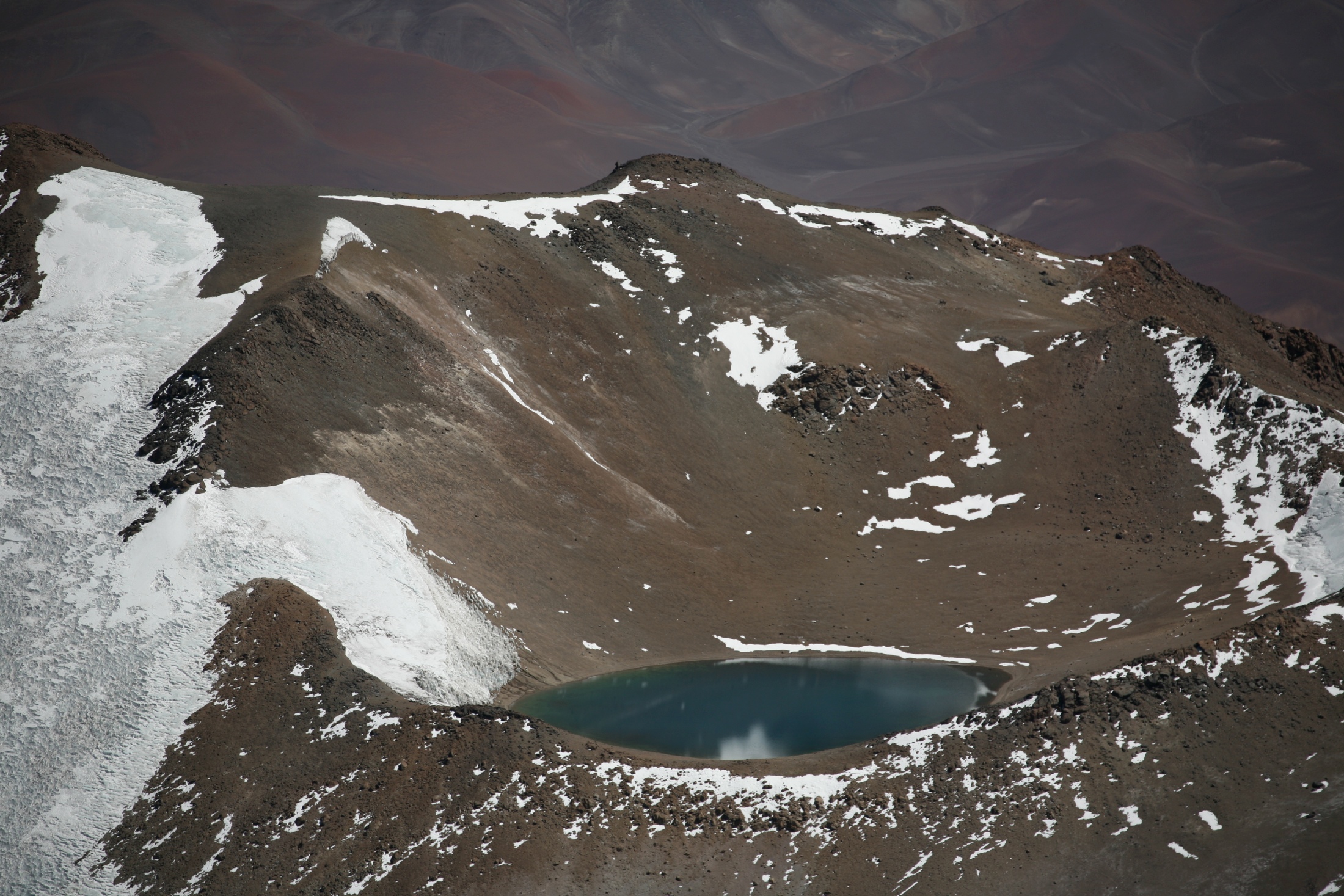 Wulkan Nevado Tres Cruces z jeziorem w którym odbywały się nurkowania.