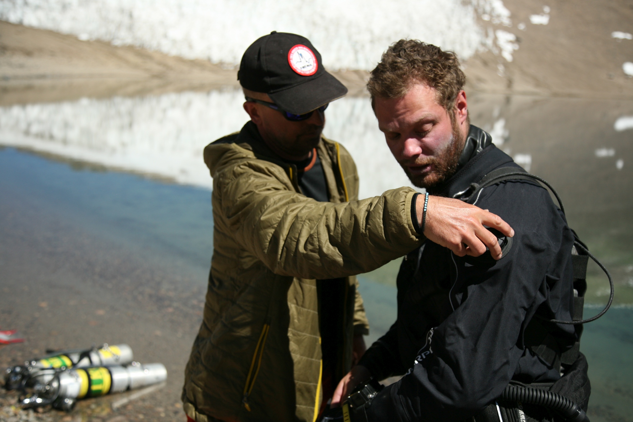 Wykonanie nurkowań badawczych w jeziorze Nevado Tres Cruces na wysokości 5915 metrów.