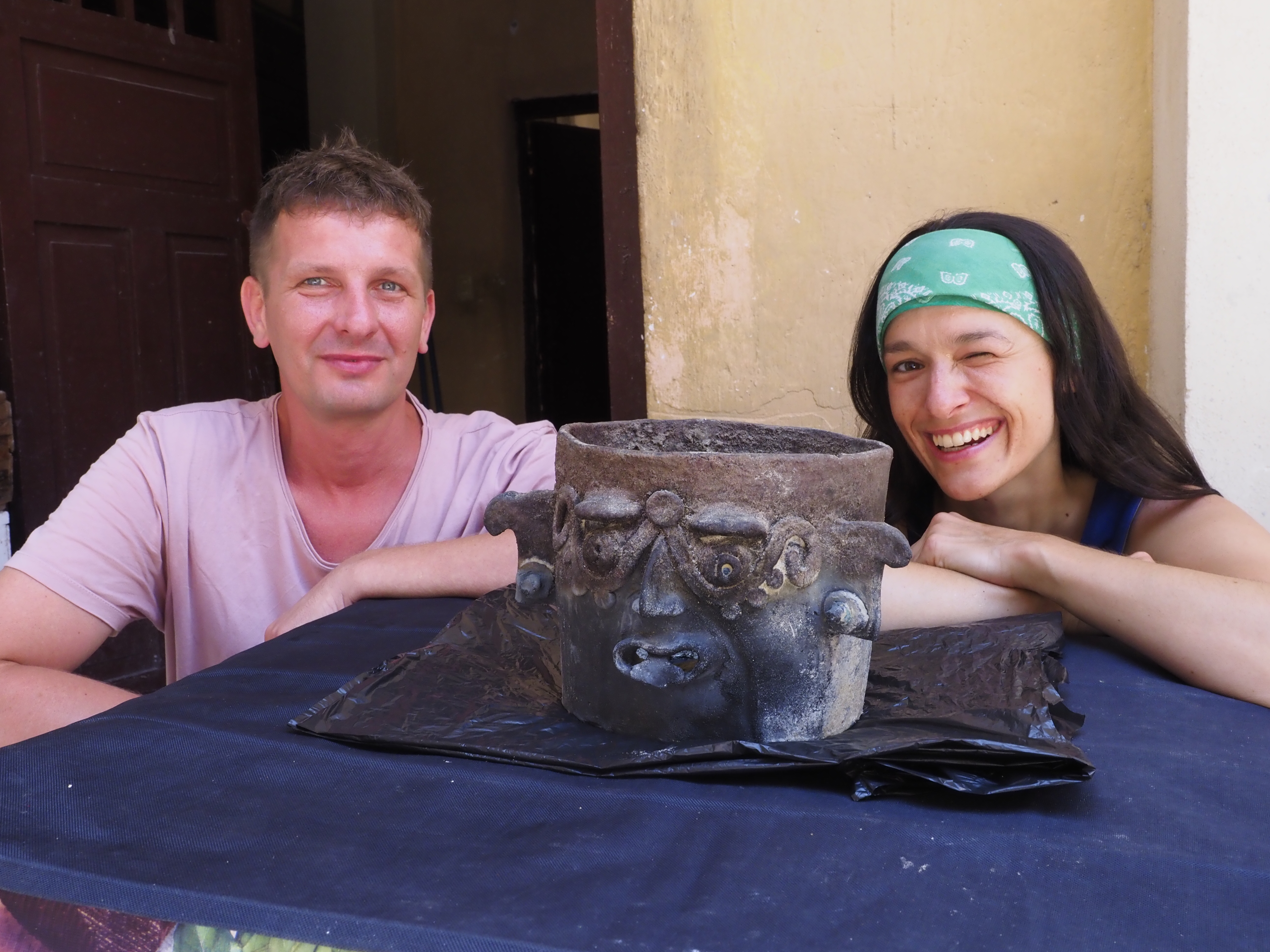 Największym zaskoczeniem był obszar na wschód od wyspy. Na głębokościach od trzech metrów przy samym pasie szuwarów, aż do kilkunastu metrów, wszędzie zalegały spektakularne zabytki. Podczas jednego z nurkowań, na głębokości pięciu metrów, zespół natrafił na coś zupełnie wyjątkowego: naczynie ceremonialne z wizerunkiem twarzy Słońca Nocnego – Jaguara Boga Świata Podziemnego. Przy pomocy specjalnie zbudowanego eżektora, archeolodzy bardzo ostrożnie wydobyli zabytek, który został następnie poddany skrupulatnej konserwacji.