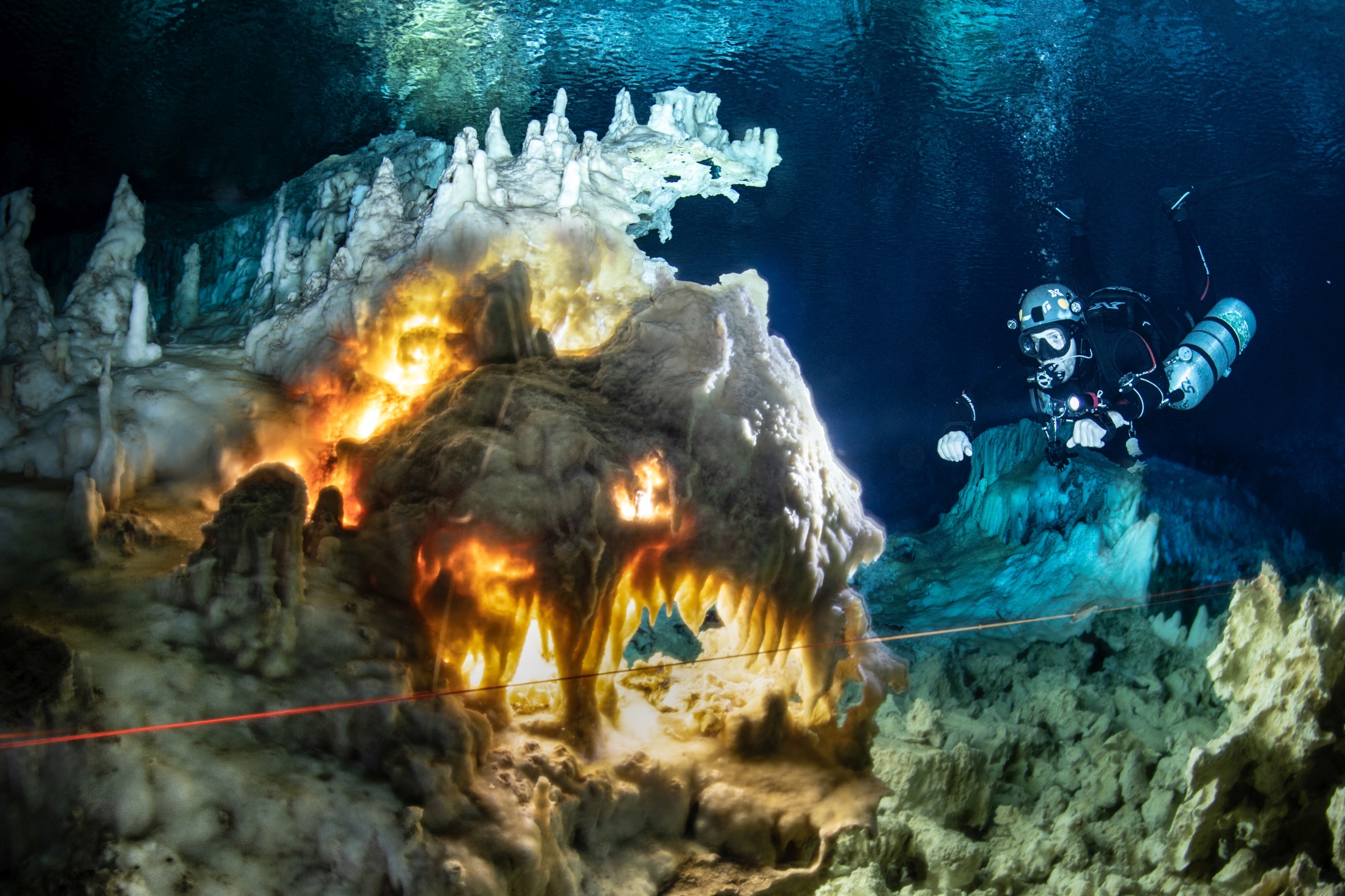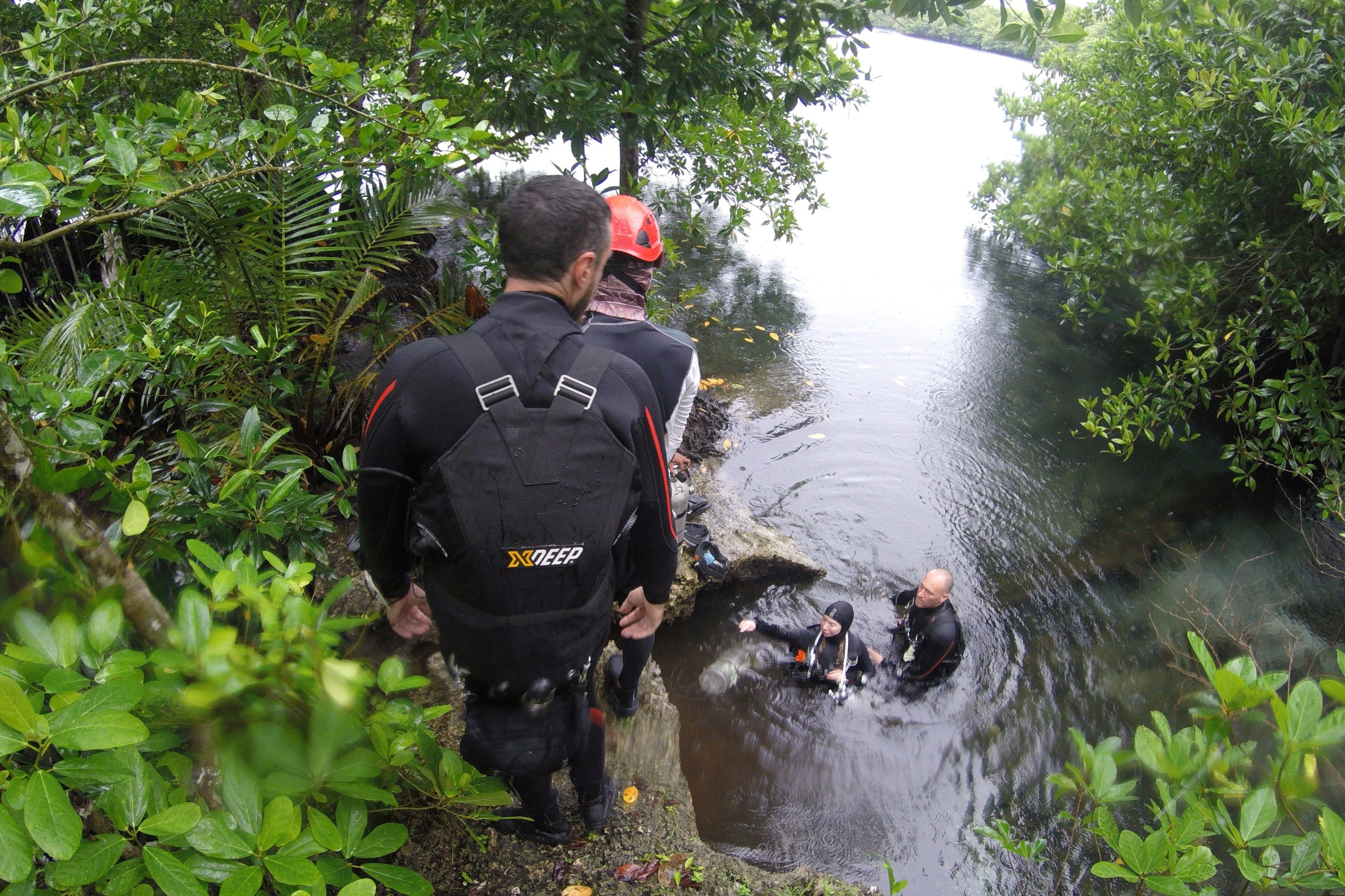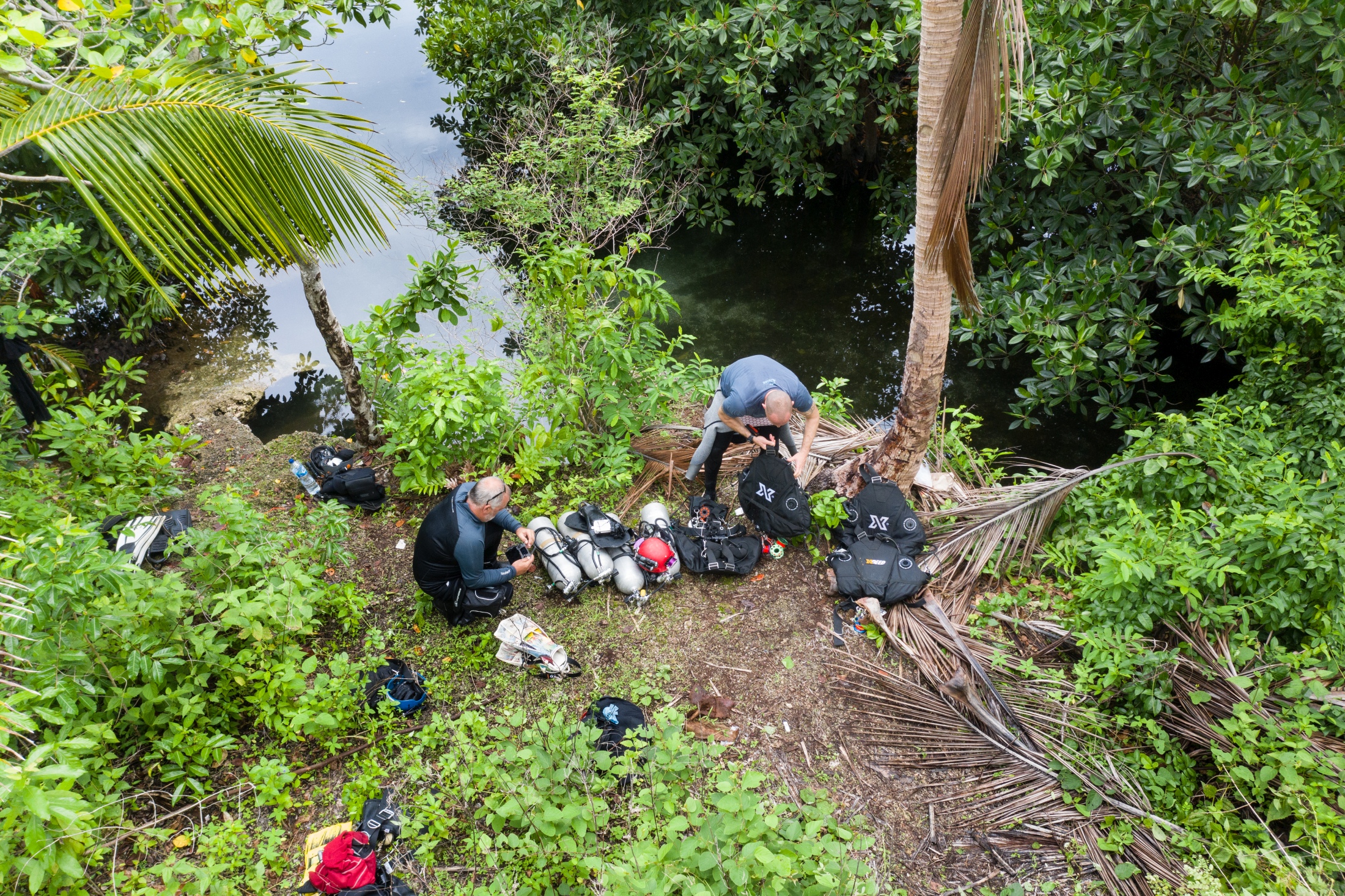 Zespół wkrótce doszedł do wniosku, że drogi prowadzące do jaskini zostały specjalnie zaprojektowane po to, by przetestować wytrzymałość śmiałków chcących w nich nurkować. Nieodzowna okazała się pomoc grupy lokalnych mieszkańców wyspy, którzy pomagali przenosić kilometry lin, sprzęt nurkowy, wspinaczkowy i fotograficzny. Tak jak w przypadku wielu innych ekspedycji, również przy tej stało się jasnym, że budowanie relacji z lokalnymi społecznościami jest czynnikiem koniecznym.