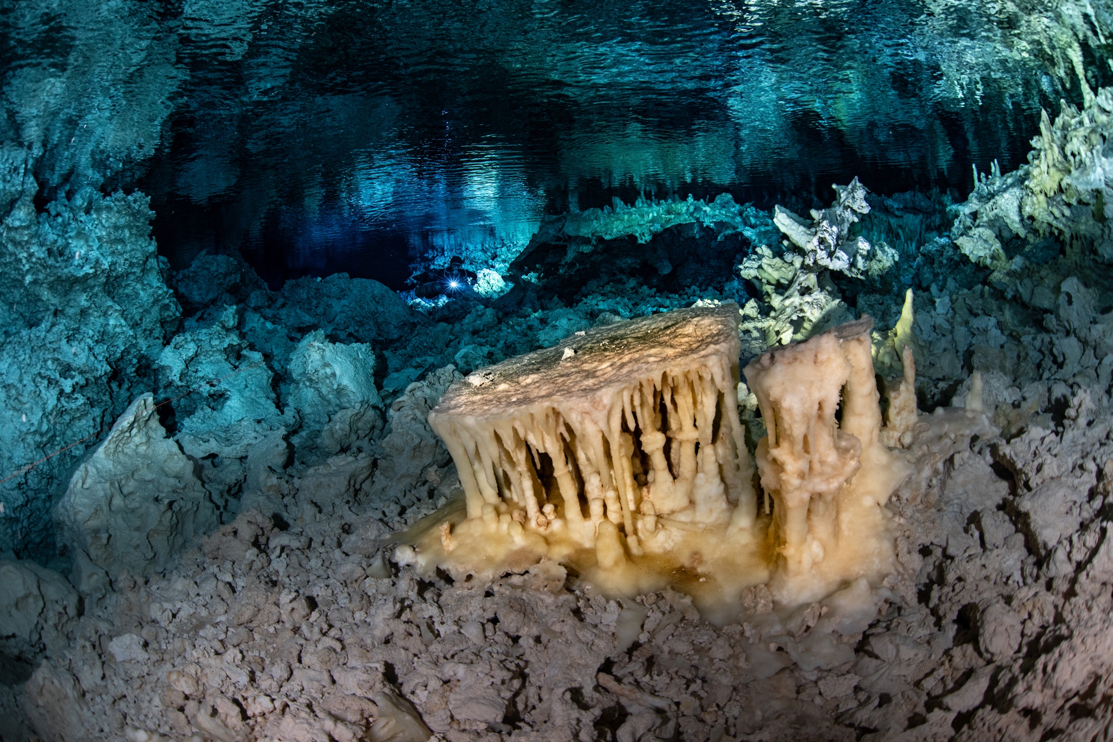 Jedna z odległych jaskiń wykazywała od początku duży potencjał, ale nagromadzone osady i zanieczyszczenia opadające z powodu bąbli powietrza uderzających w luźny strop, oraz znaczna głębokość, spowodowały konieczność przerwania esploracji i podjęcia jej w późniejszym terminie w konfiguracji CCR.